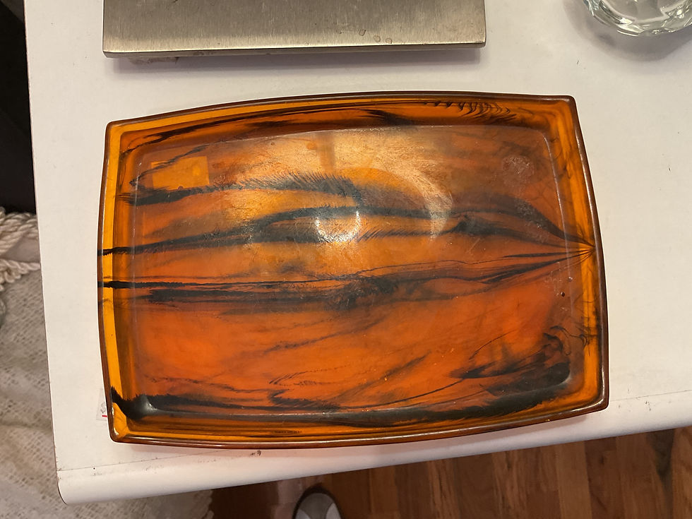 Vintage Amber Swirl Bakelite or Resin Rectangular Tray